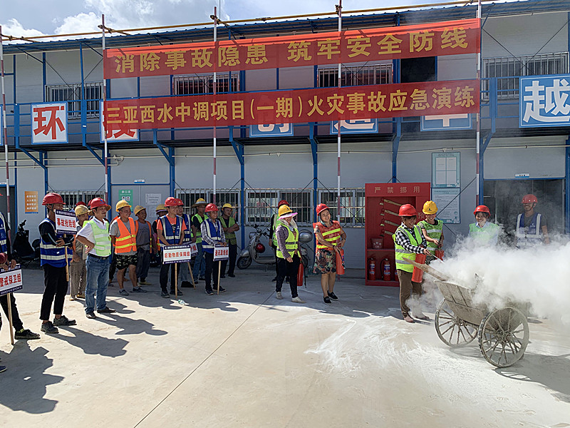 7月28日下午,三亚西水中调项目顶着炎炎烈日,组织开展火灾事故应急演练。项目人员及各班组人员共同学习使用灭火器等消防器材,增加消防知识,提高消防安全意识。